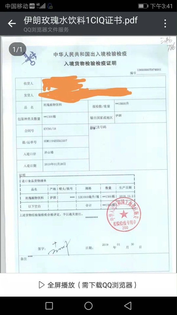 2、对货物文件进行审核,包括出口国出具的卫生证、产地证、生产许可证、质量保证书等;